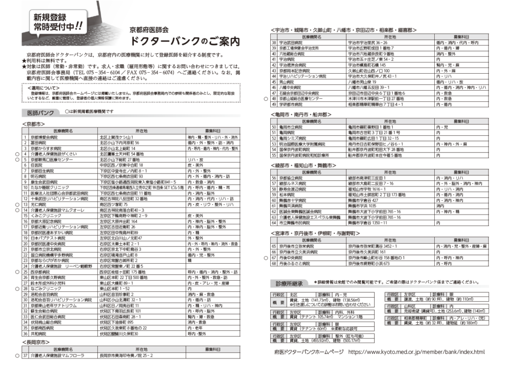 ※求人・求職に関するお問合せにつきましては、京都府医師会ドクターバンクまでご連絡下さい。